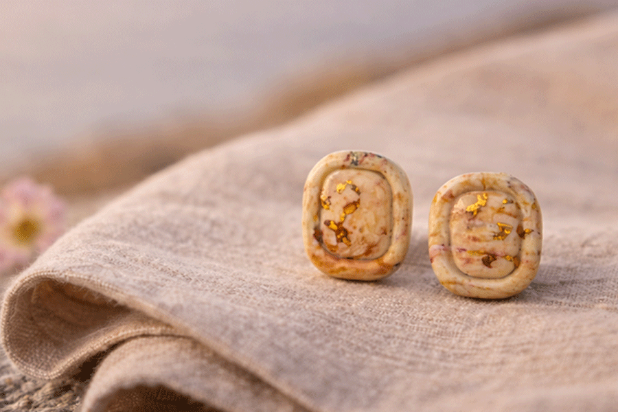 pure_form_ceramic_stud_earrings_luxury_campaign_minimalist_mediterranean_architecture_honed_limestone_surface_soft_natural_daylight_hand_painted_textured_round_blue_green_gold_speckled_designs_medium_format_photography handcrafted_clay_texture_detail_soft_light_material_study_quiet_luxury_suzy_decor one_of_a_kind_handmade_clay_jewelry_single_piece_minimal_space_soft_light_suzy_decor urban_aura_ceramic_hand_painted_earrings_collection_on_architectural_stone_bench_in_warm_city_park_luxury_campaign_medium_format_photography handmade_ceramic_jewelry_collection_on_galician_granite_with_atlantic_ocean_background_sunset_lifestyle_campaign_photo_suzy_decor